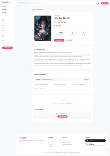 - Tương Tác Sâu: Tích hợp sẵn hệ thống đánh giá (Rating) và bình luận, giúp cộng đồng độc giả giao lưu và thảo luận về tình tiết truyện sôi nổi.